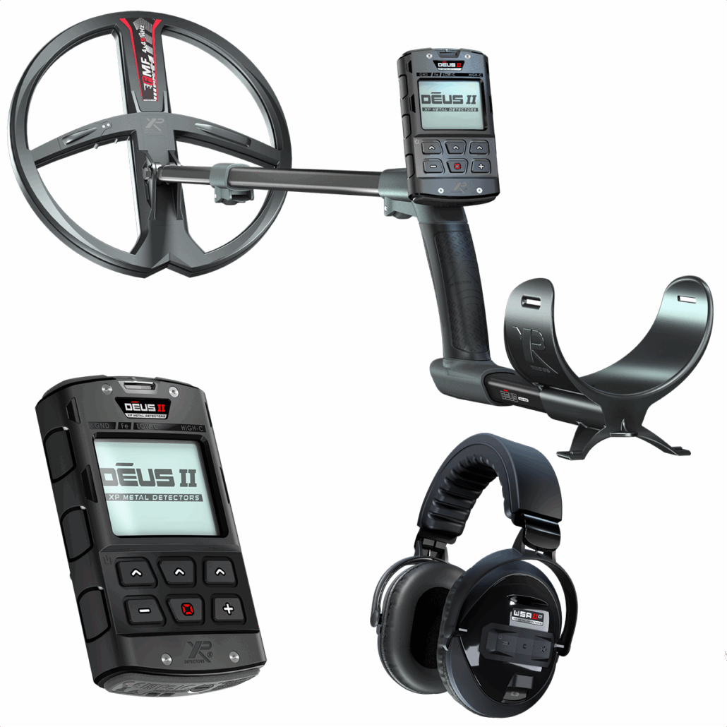 Der XP-Deus II mit RC Fernbedienung , WSA II XL Funkkopfhörer und 28 cm FMF-Suchspule